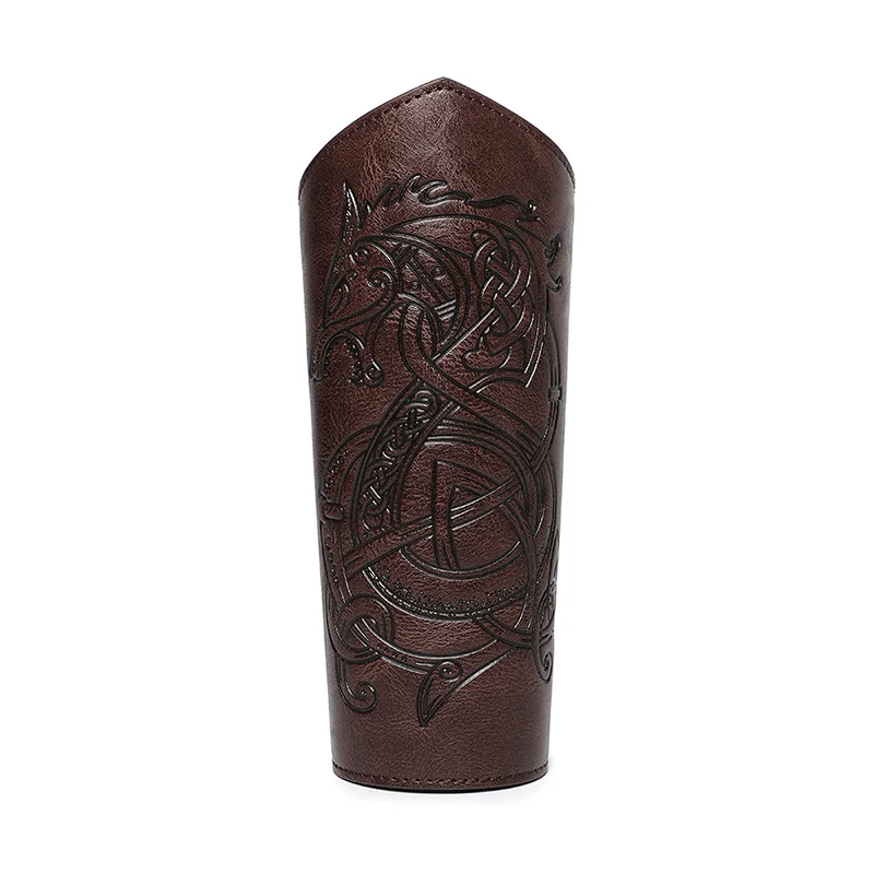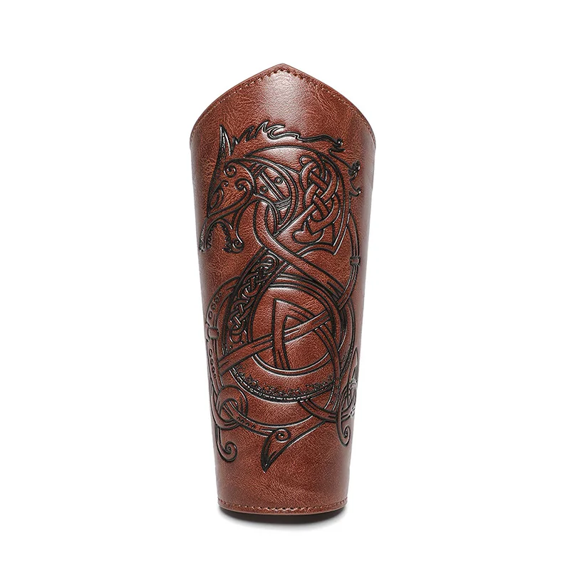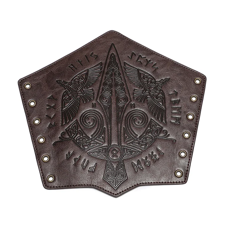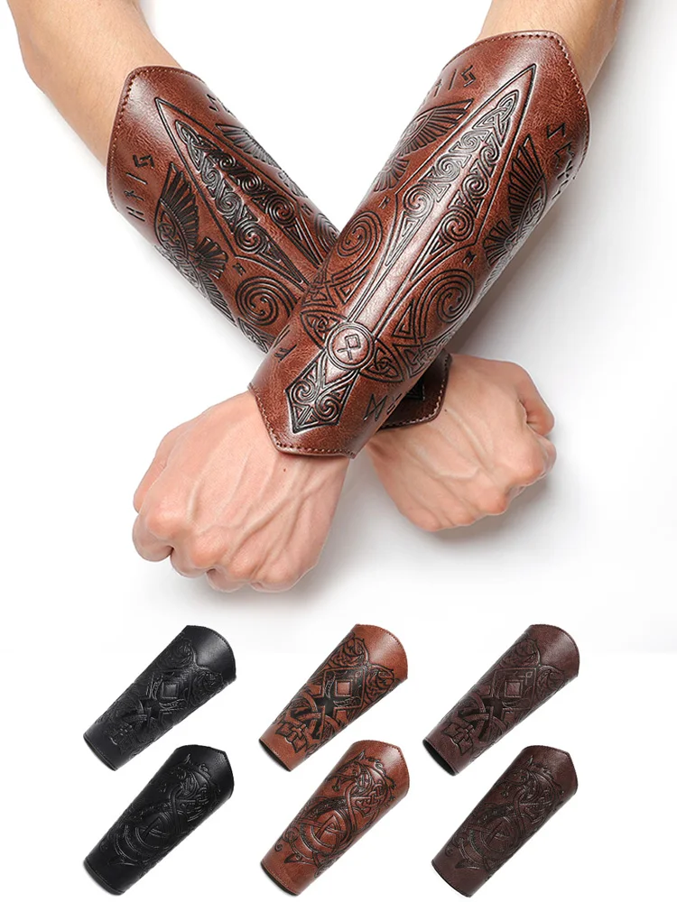 Medieval Leather Wrist Guards Viking Warrior Embossed Leather Gauntlets Knight Arm Gloves Retro Gothic Wristbands Outdoor Armor